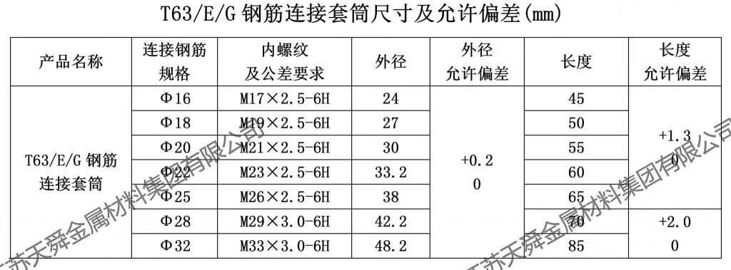 年產量400MPa級,500MPa級和630MPa級鋼筋連接器(套筒)500萬只以上.T63/E/G直螺紋套筒連接接頭的型式檢驗應符合<鋼筋機械連接技術規(guī)程>JGJ 107中相關規(guī)定。
